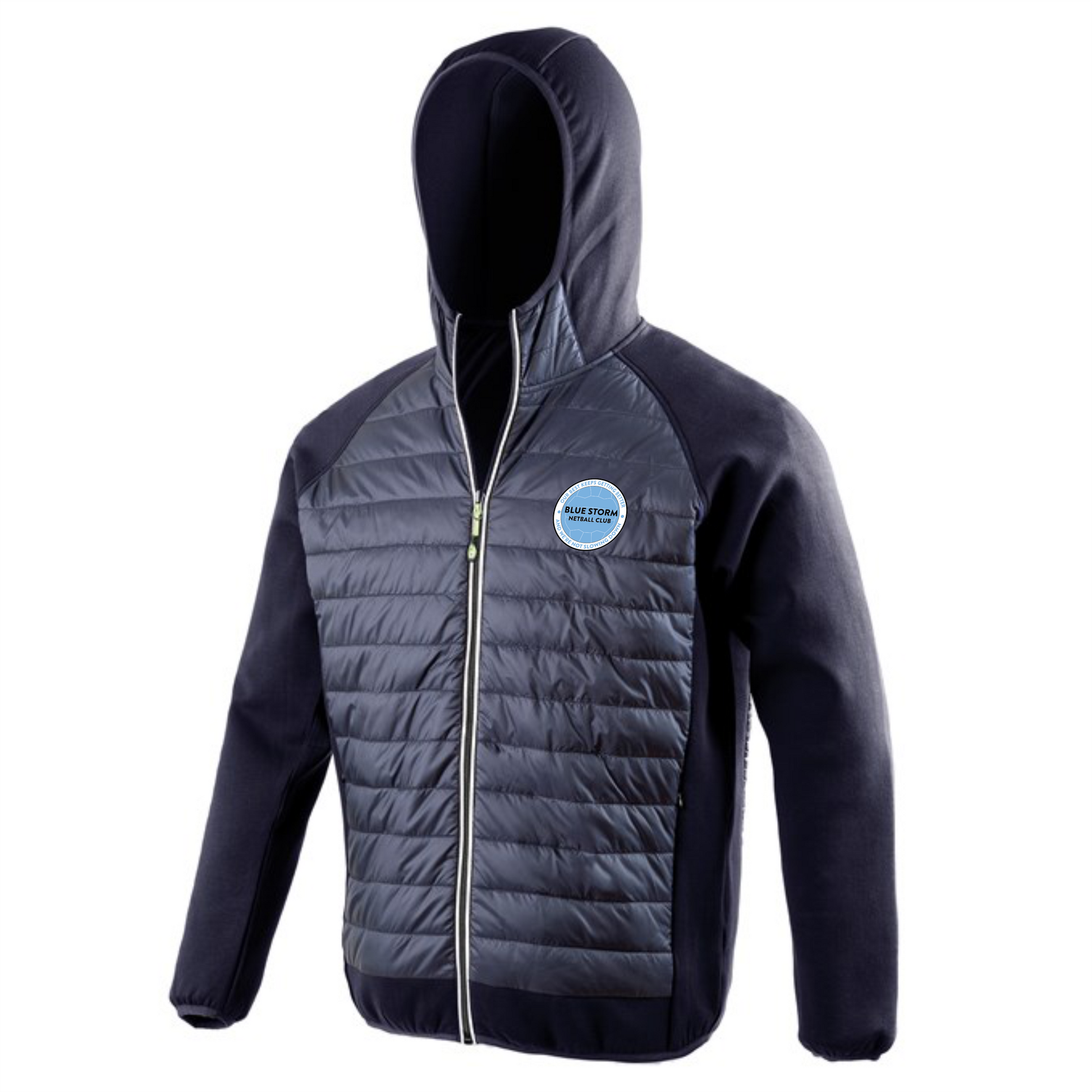 The official Unisex Sports Jacket for Blue Storm Netball Club.